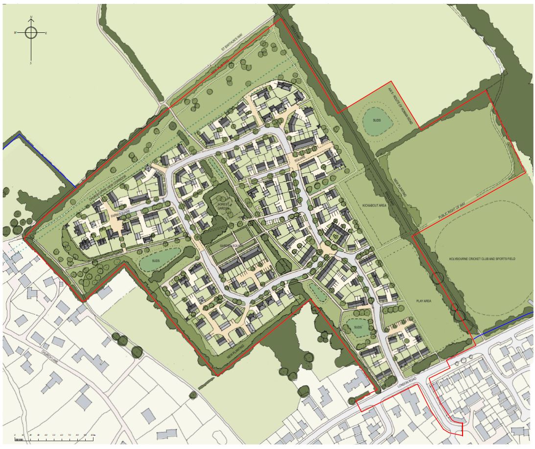 Redbrown, owners of the Froyle Estate, have formally applied for outline planning permission to build a new 160-dwelling housing estate on open countryside at the NE corner of Holybourne, opposite Town & Country Cars.